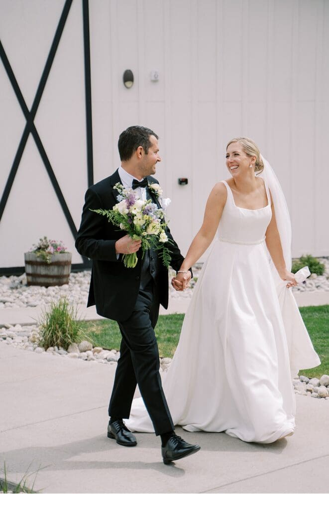 One of the standout features of their wedding day was the incredible spring florals. Soft pinks, creamy whites, and touches of sage brought a romantic, airy feel to every part of the celebration. The bouquet, ceremony arch, and reception details all blended seamlessly with Woodlands Co.’s signature modern white barn aesthetic. These floral details truly elevated the beauty of the day and made photographing each moment a dream.